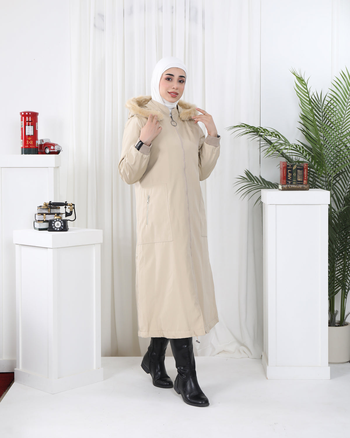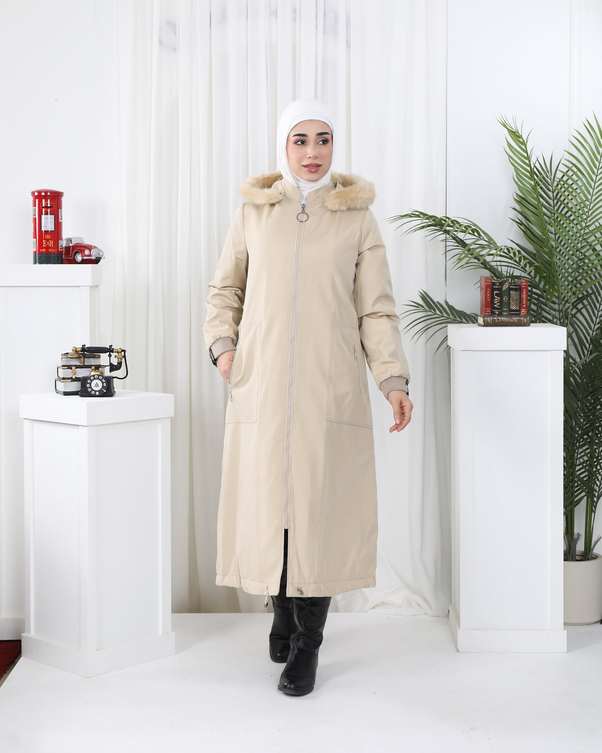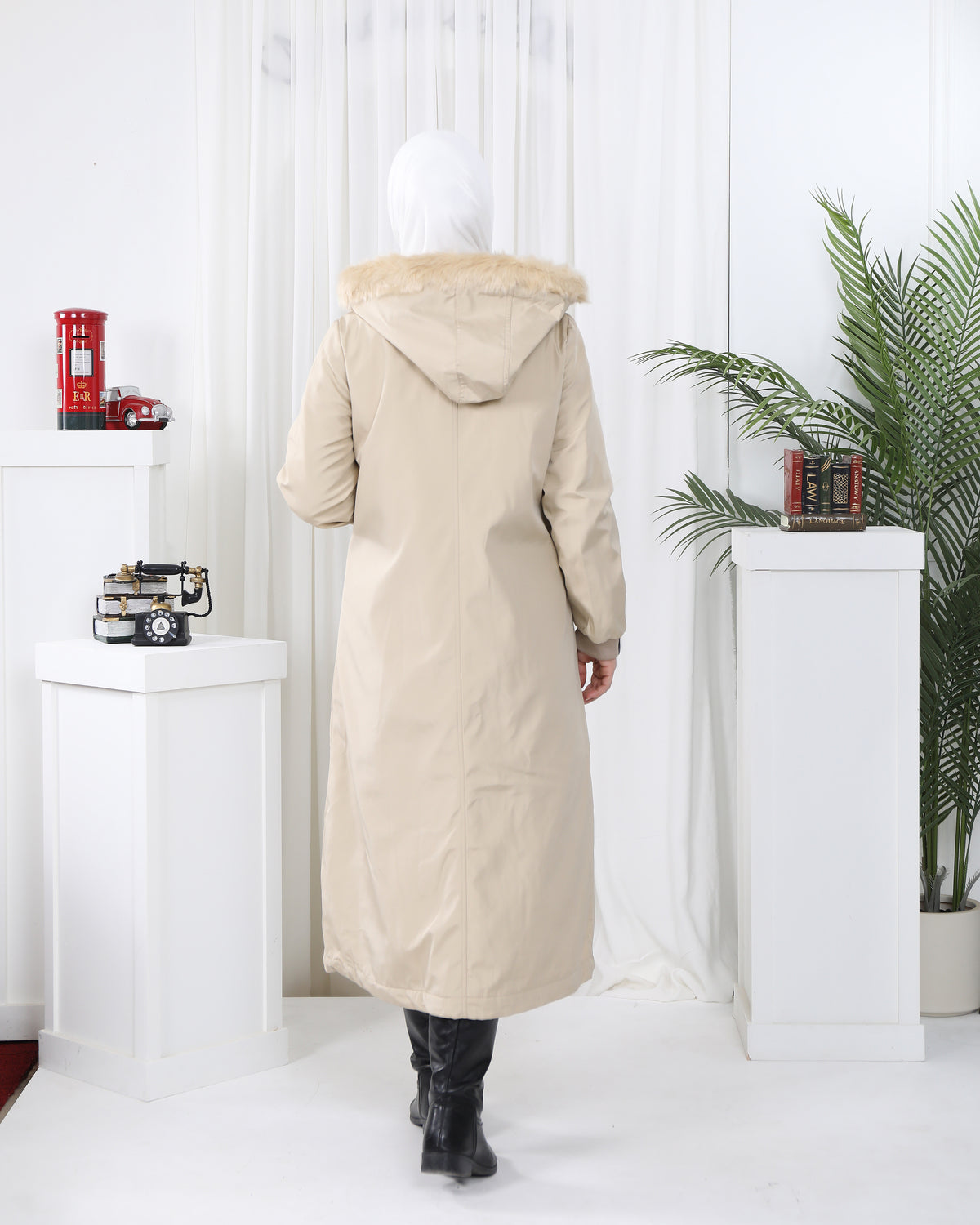 Faux Fur Hooded Parachute Jacket – Beige