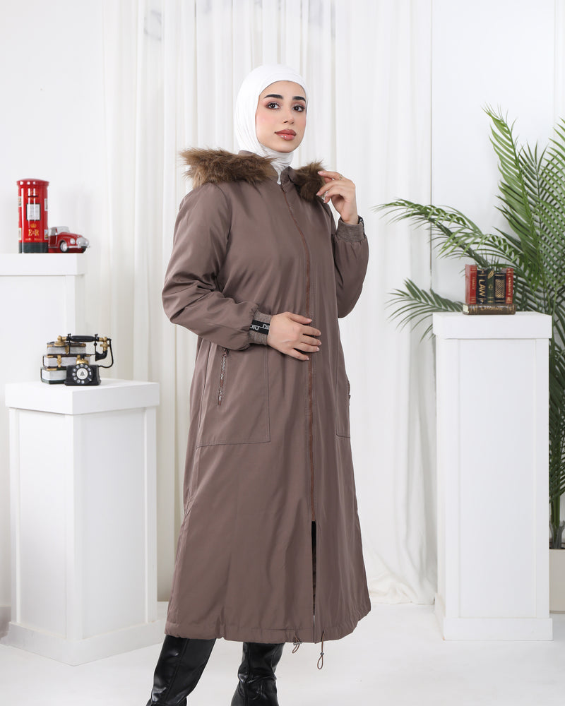 Faux Fur Hooded Parachute Jacket – Mocha